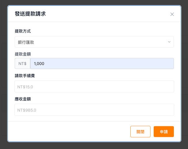 輸入申請金額後送出申請。您可以在 請款 頁面查看付款的狀態。