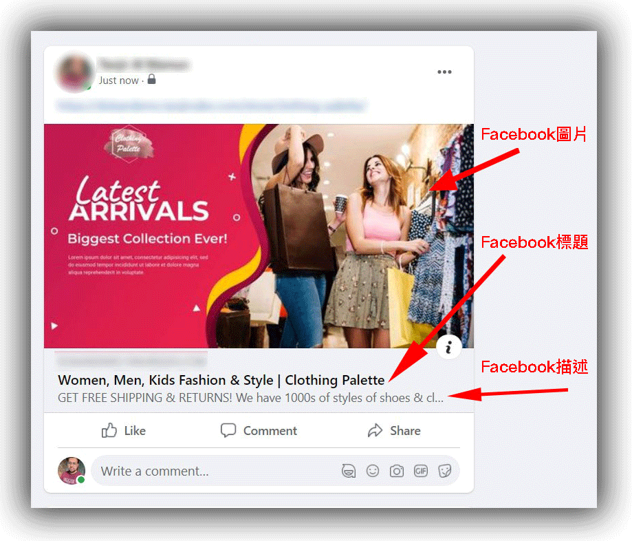 Facebook 標題:這將作為商店在 Facebook 動態中的標題顯示。