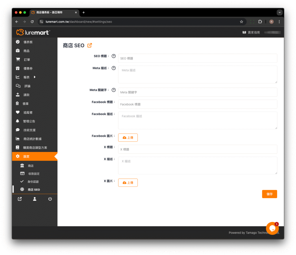 商店 SEO 功能正是為此而設計的。賣家可以設定 SEO 標題、Meta 描述、Meta 關鍵字、Facebook 標題、描述和圖片、X 標題、描述和圖片。
